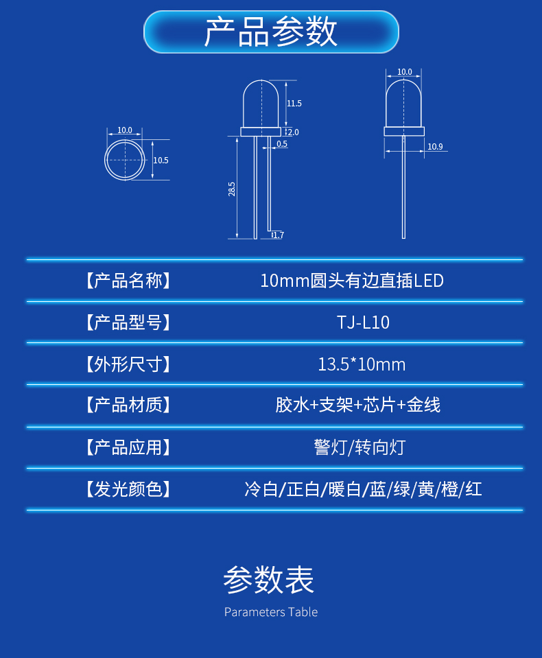 • F10圓頭有邊直插led燈珠